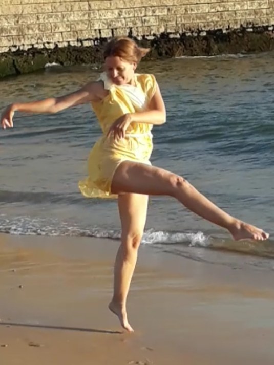 Photo of me dancing on a beach in Portugal, similar to how Anna Duncan did.