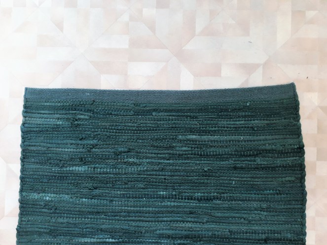 I have been looking around to find a dark green, long, mat for my kitchen for months. Since I live on a small budget, it also can’t be to expensive. Imagine how glad I was to find one for just 30 USD (300 SEK) at Rusta. But, it wasn’t made of cotton and directly the day after, I started sneezing, which I assume was because it being made with an allergen in its material. Not only that, in my very sunlit kitchen, it looked blue during the whole day until nightfall. Then it looked green. It made me frustrated, so I returned it, and luckily found another one elsewhere a couple of weeks later.